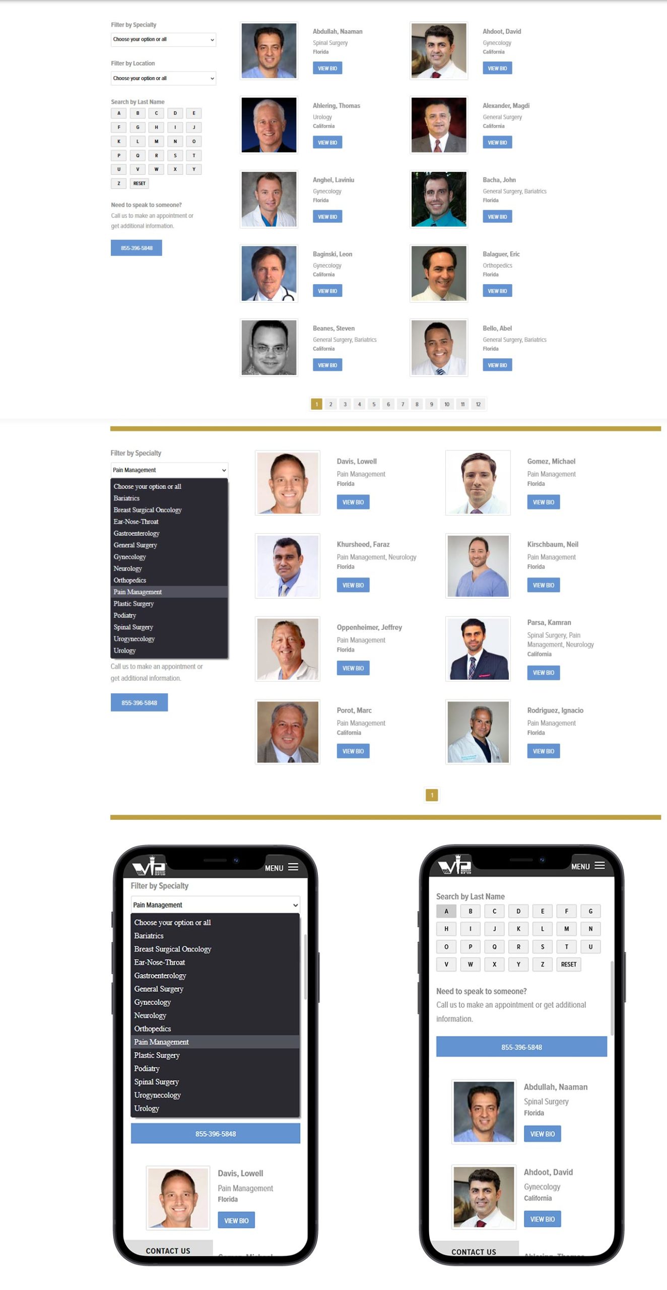 The first way is to look up by specialty. This will make things easier as you already know what type of treatment you’re needing. The second is by region/state. As there are only so many states miVIP services, you can really narrow down the area and the closest physician in your area. The third way is by searching the physician by last name with a last initial selector, which will give you all the surgeons listed under that initial.